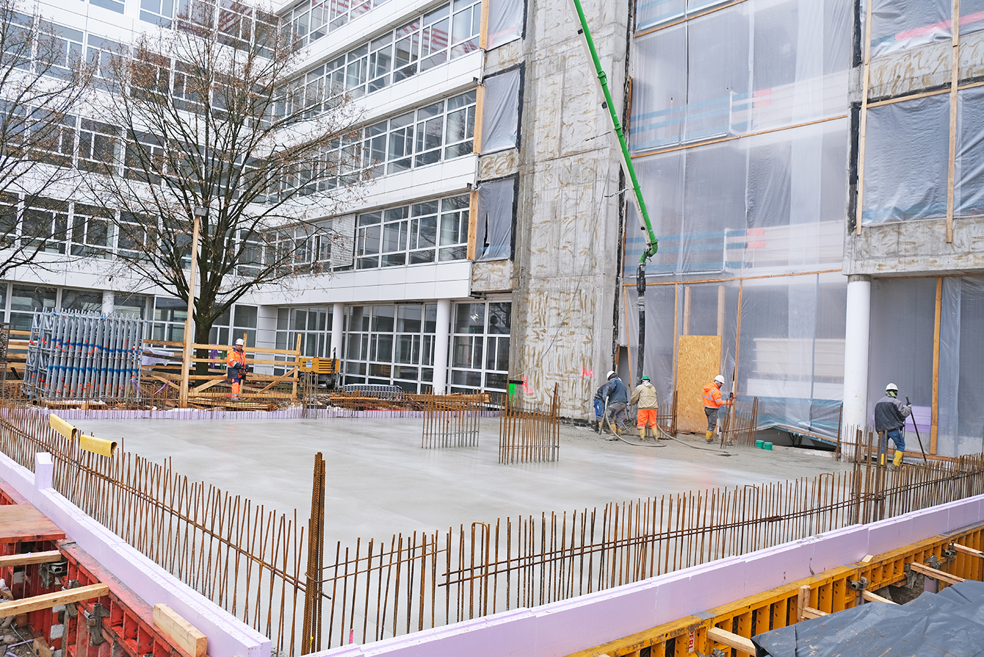 - Bauteil 3 (Bestand): Die Abbrucharbeiten für neue Fundamente sind so gut wie abgeschlossen.